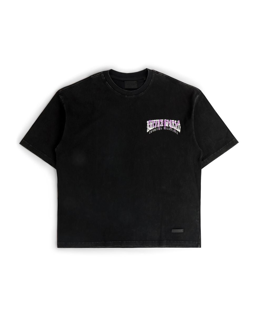 Stand out, graphic tees featuring a bold purple physique future design with a premium rhinestones detailing, washed black finish, oversized